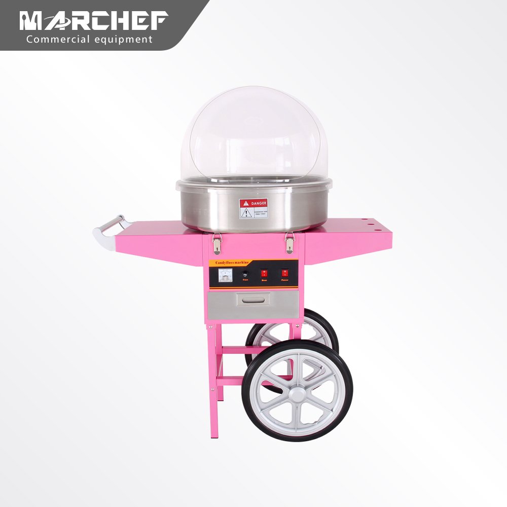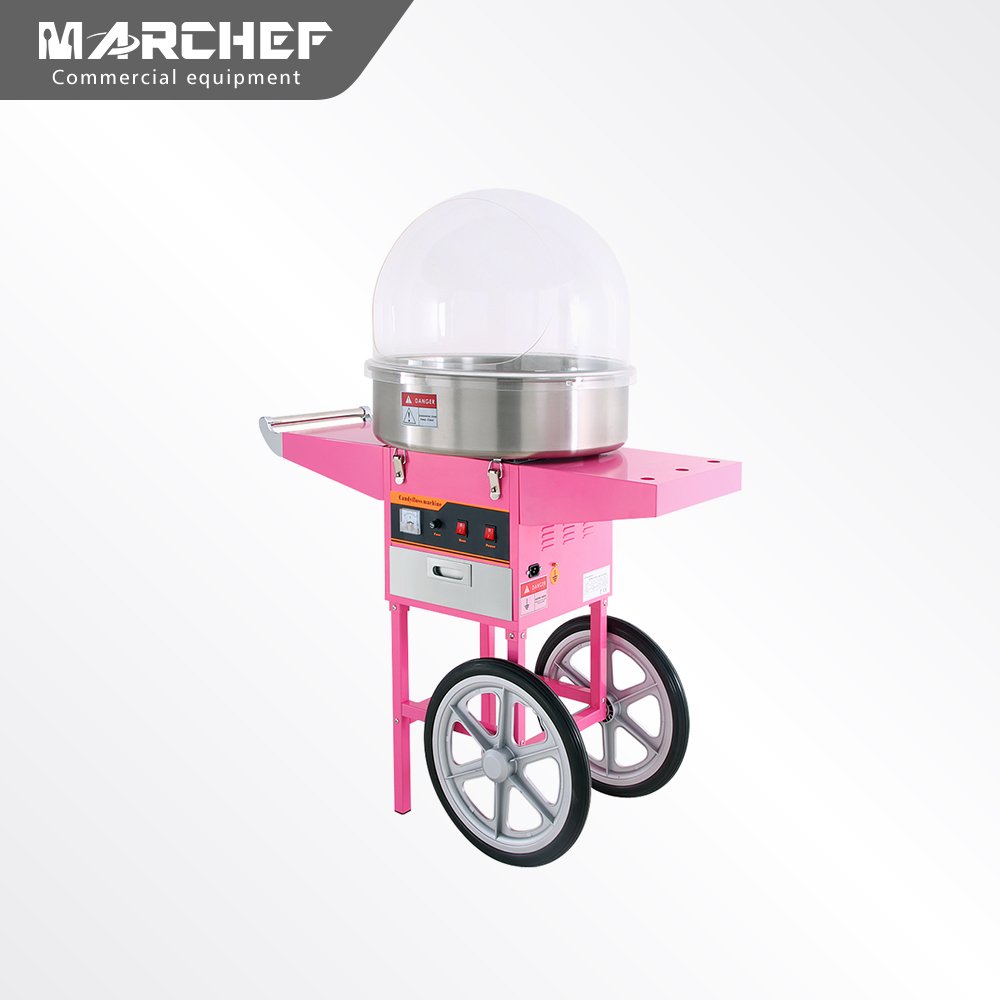 MARCHEF commercial cotton candy floss machine can easily make interesting fluffy marshmallows. Food pot made of SS201,Drawer made of SS430,body made of A3 Iron with coating, Very suitable for stadiums, carnivals, arenas, festivals, amusement parks, shopping centers, department stores, and other large venues.