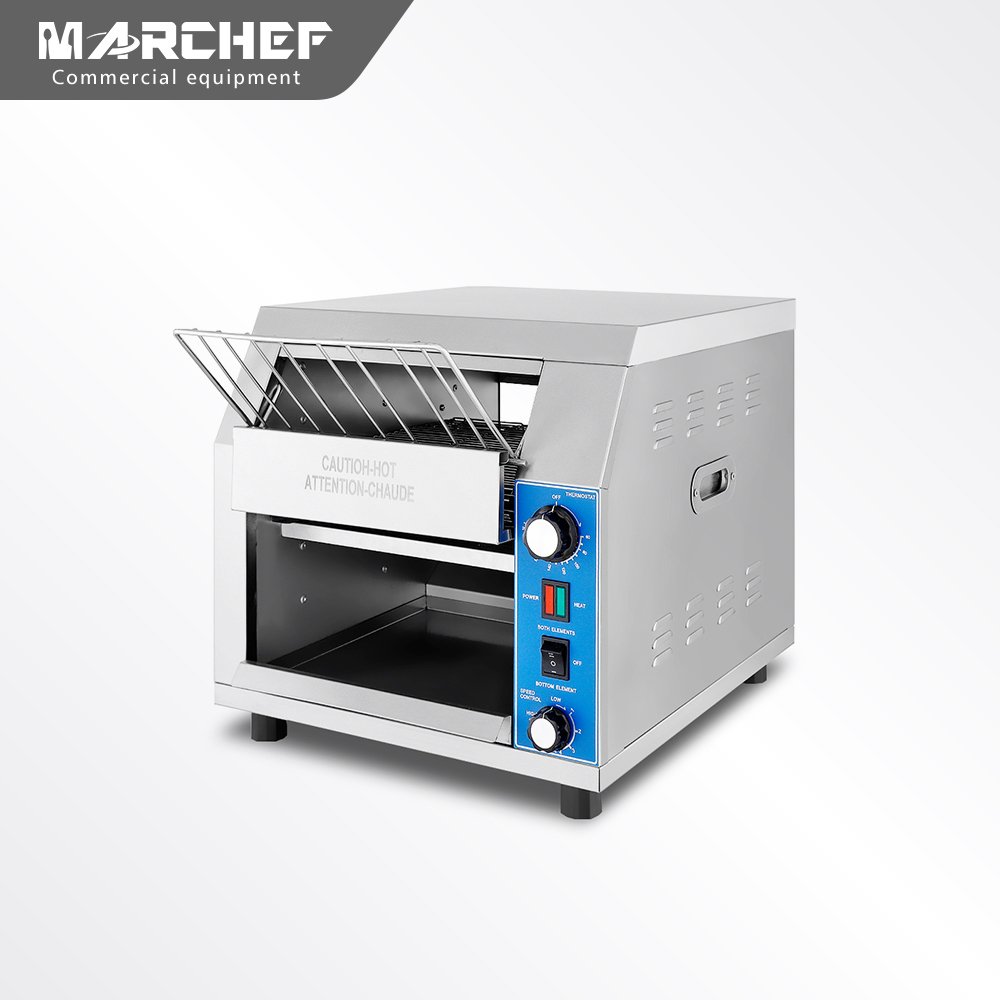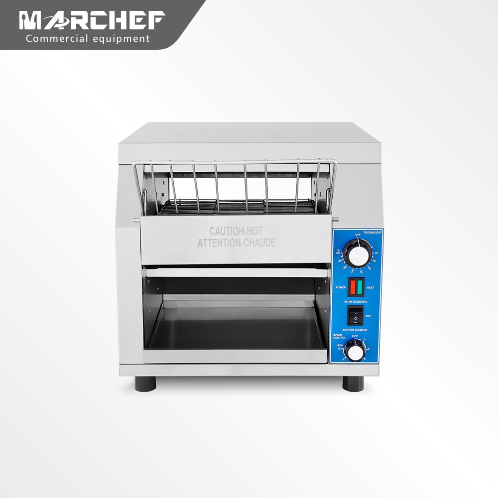 MARCHEF Professional Electric Conveyor Toaster is made of stainless steel.